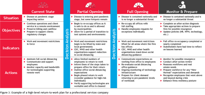 As the response to the COVID-19 pandemic progresses, many companies have established operational crisis management teams and adjusted to global restrictions on work and movement. Executives are now beginning to ask the question: How are we going to return to work?