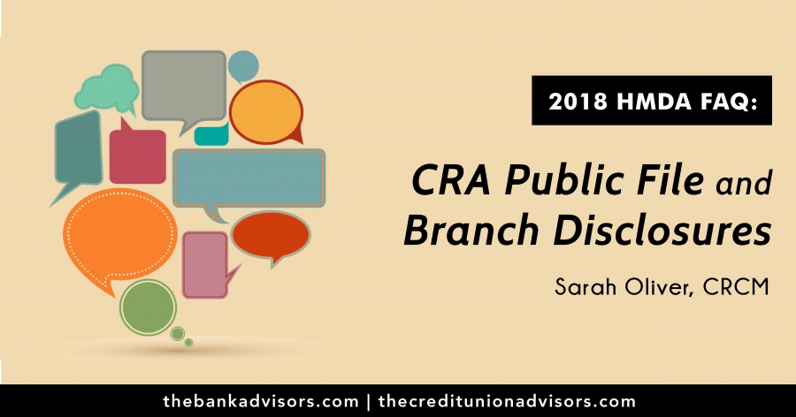 Questions regarding the impact of the new HMDA regulation have been top of mind for our clients. Specifically, many of you have asked how the regulation affects CRA public file and branch disclosures.