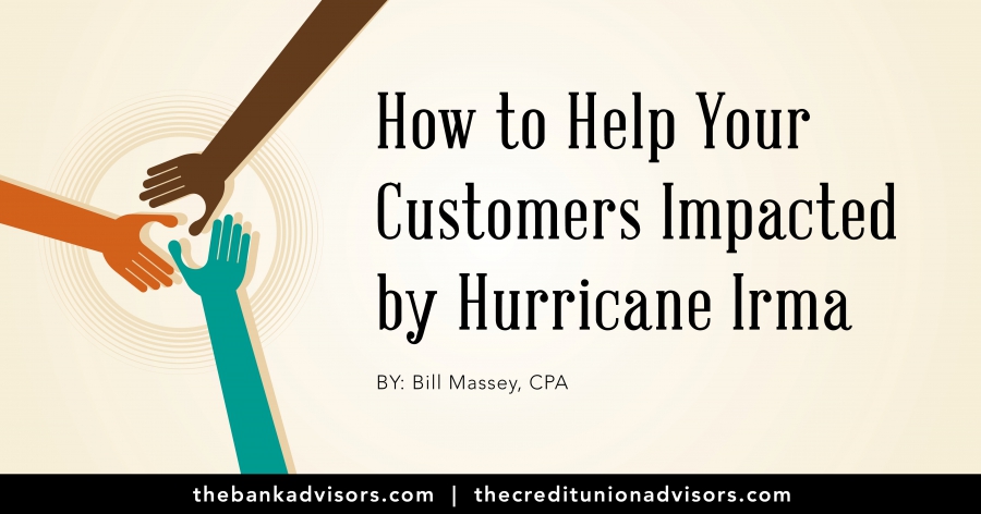 We have started getting questions from clients in affected areas about what assistance they should be providing customers in affected areas. What should you be doing to help your customers affected by Hurricane Irma?